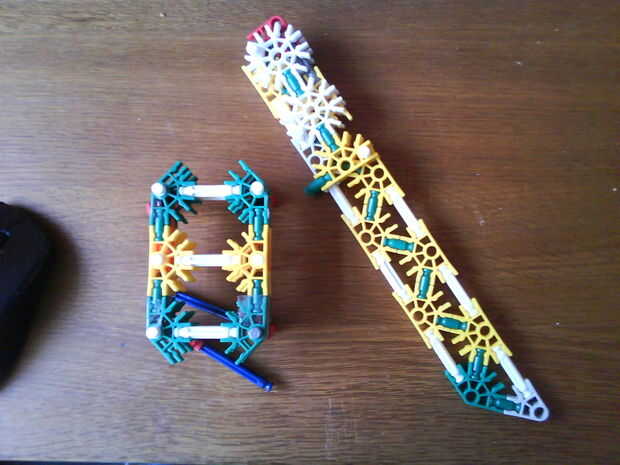 Esta es mi funda de cuchillo de K'Nex. Se ajusta sobre el hombro. Este es mi primer instructivo, y creo que es bastante bueno. Es compatible con cualquier cuchillo de K'Nex con un hoja 1 conector grueso (es decir un bronceado).Lista de partes:Barras