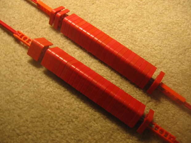 3: ampliar (otra vez). Tome nota que el final de un conector, hay tres rojos, mientras que sólo hay 2 conectores rojo y un espaciador azul en el otro extremo.