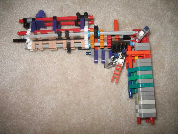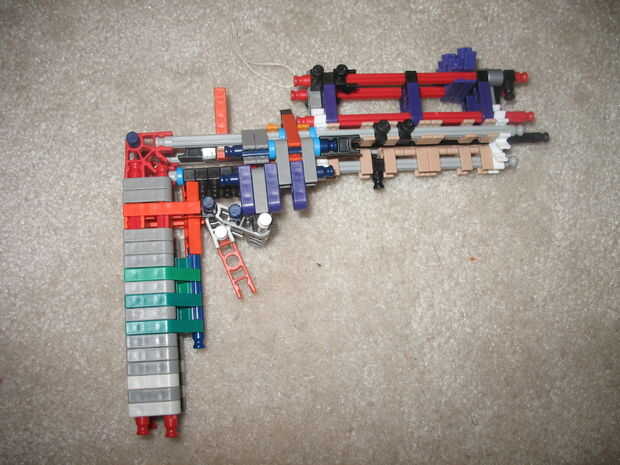 he hecho una nueva arma bastante fuerte con un rango de ± 60 pies y:-carga de 5 mag.-no verdadero gatillo-manejar bastanteLista de partes:Conectores:Gris oscuro - 14Gris (dos ranura) - 2Orange - 11Rojo - 3Verde - 4amarillo - 18especial azul - 2blanco
