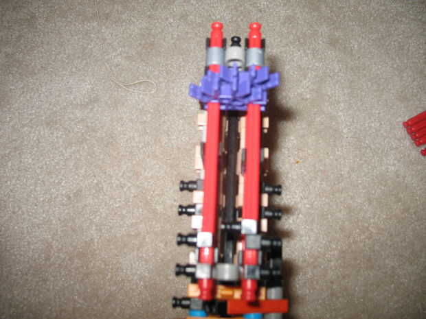 es un arma de simple KVG con desencadenar nuevos lo siento por pequeñas fotos usé mi teléfonoPaso 1: barril acaba de poner conectores rojo 11 en una barra rojaPaso 2: gatillo hacer este 2 conectores naranja sobre una barra blancaPaso 3: manejar! sin