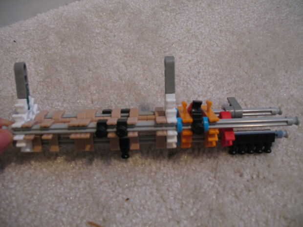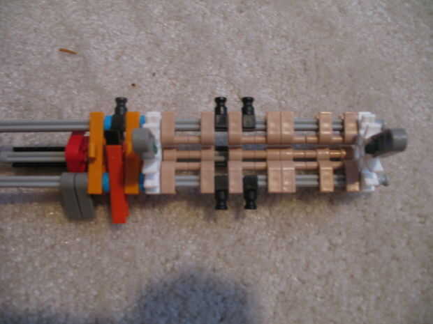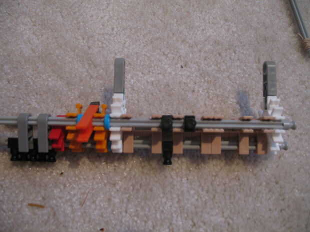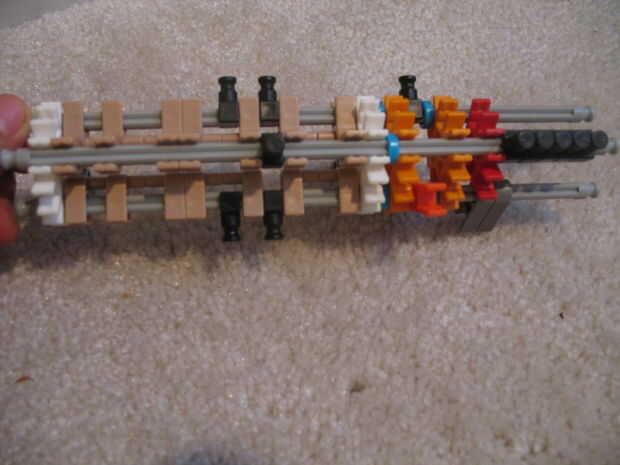 es un arma de simple KVG con desencadenar nuevos lo siento por pequeñas fotos usé mi teléfonoPaso 1: barril acaba de poner conectores rojo 11 en una barra rojaPaso 2: gatillo hacer este 2 conectores naranja sobre una barra blancaPaso 3: manejar! sin