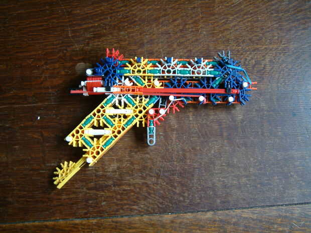 Es una pistola de acción de diapositiva lo que significa que tire la corredera hacia atrás para amartillar el percutor y entonces la corredera regresa a su lugar. El mango es también la revista para que sea más ergonómicamente amable. Sin embargo esto y el cañón es más ancha que cada barra significa que desafortunadamente es propenso a atascos.