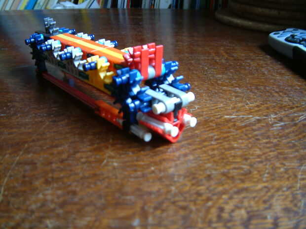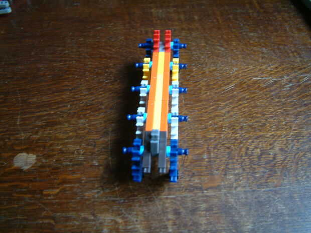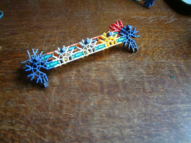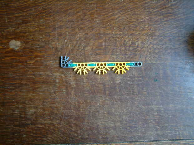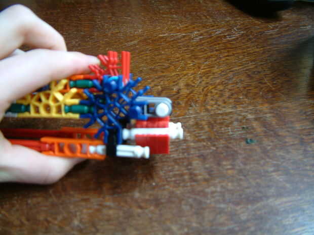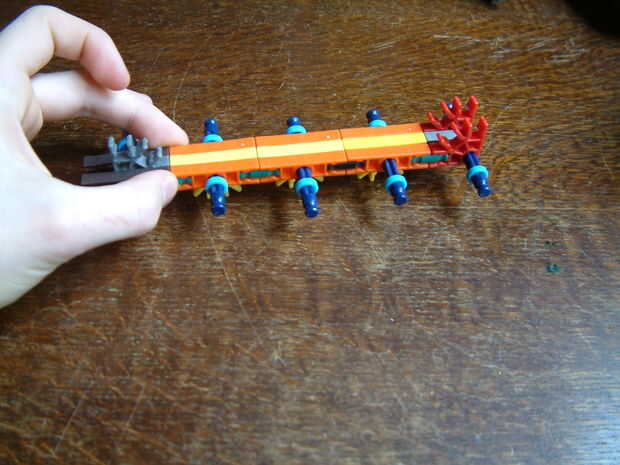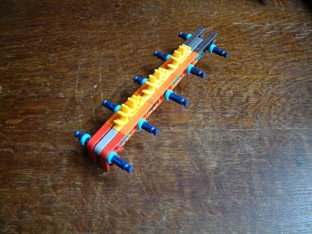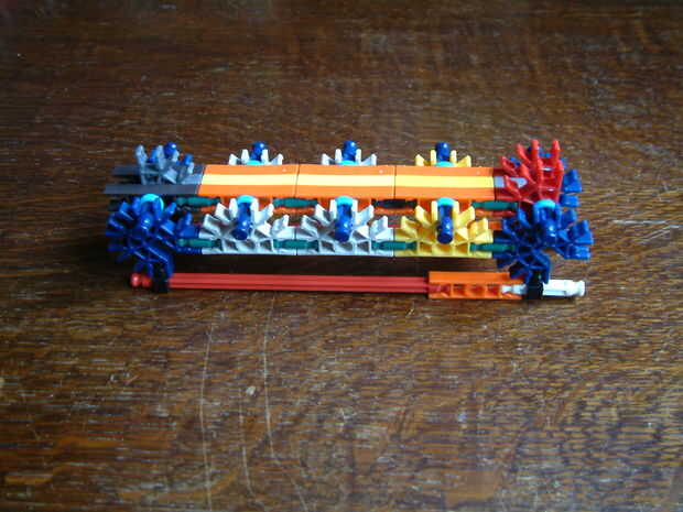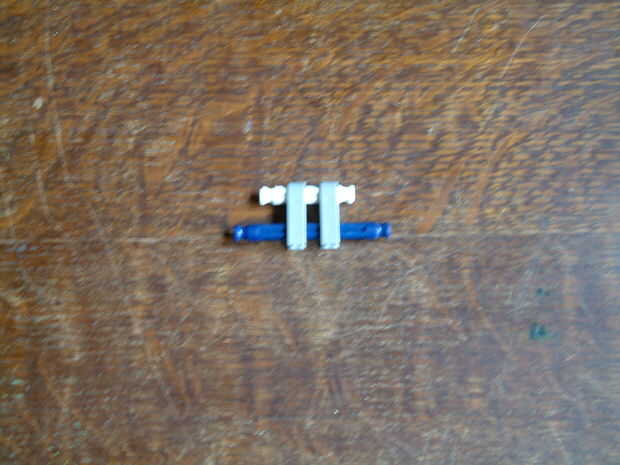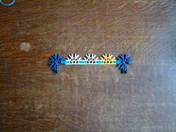 4 y 5. Ahora para montarlo, toma 5 barras azul y deslícelos a través de los orificios de los conectores. (tenga en cuenta las direcciones de los conectores. Luego deslice a 10 separadores azules en los extremos de las varillas.