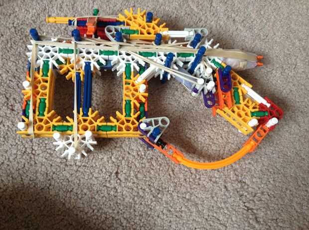Aquí es mi favorito. El lanzador de k'nade. K'nade es un juego de palabras de K'NEX y Granada. Se conecta a la pistola para que pueda hacer un K'nade (Granada de KVG) tomando dos conectores azules y conectarlos y colocarle una varilla blanca. La alimentación de la barra blanca en el barril y luego puede tirar al K'nade. (Nota: usando más que 1 banda de caucho en la barra de memoria ram K'nade lanzador dará mayor alcance. Si pones un montón de bandas ponen una banda elástica frente al conector naranja en la barra de memoria ram por lo que hace que el conector no vuela la barra ram.)