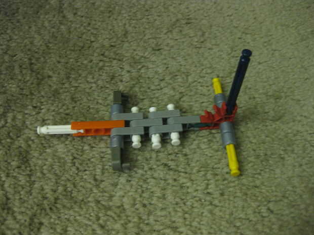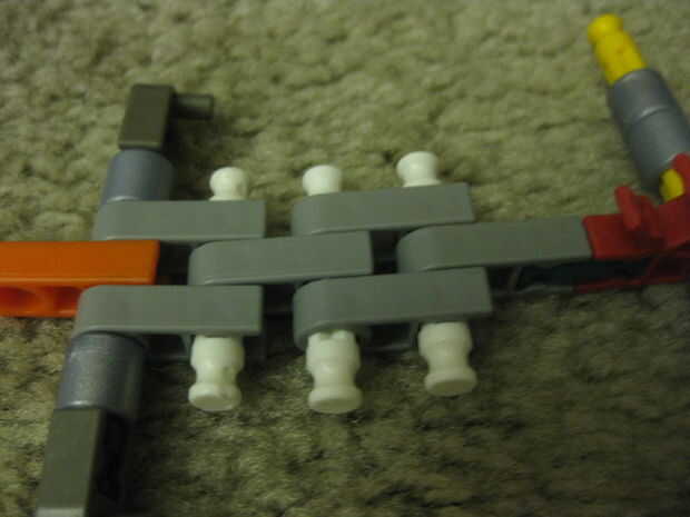 KVG lanza en el aire, también podría ser un armaAllí se supone que es una banda de goma en el extremoPaso 1: Las piezas que necesitaHay tres conectores blanco conectores naranja 29, dos conectores tan, nueve barras grises, dos barras blancas y una ba