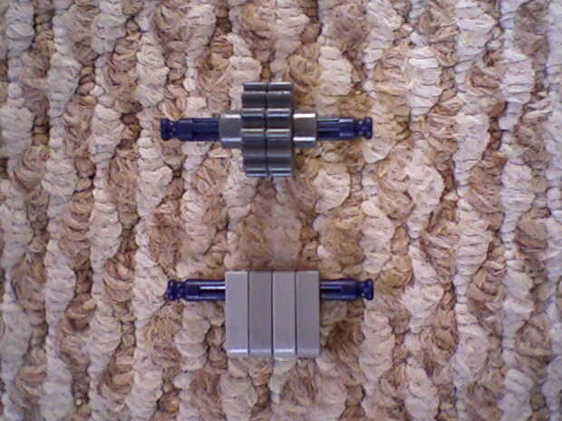 es un dispensador de cinta hecho únicamente con piezas de Lego, excepto la cinta sí mismo. Incluso corta utilizando una pieza de Lego. Hay un video explicando el montaje completo y funciona! También una ingeniosa pequeña historia sobre por qué constr