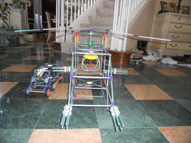 empezó con el helicóptero Chinook desde un libro de instrucciones de KVG luego modificado para ser más como un verdadero Chinnook. Agregué: una rampa, tanques de combustible, motores de falsos en el exterior, ametralladoras y un cañón de gatling. Tam