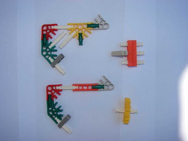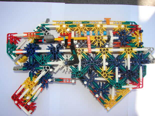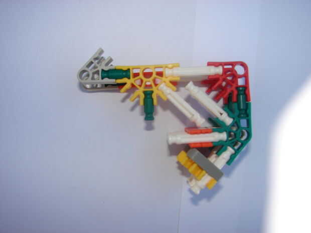 es un arma de simple KVG con desencadenar nuevos lo siento por pequeñas fotos usé mi teléfonoPaso 1: barril acaba de poner conectores rojo 11 en una barra rojaPaso 2: gatillo hacer este 2 conectores naranja sobre una barra blancaPaso 3: manejar! sin