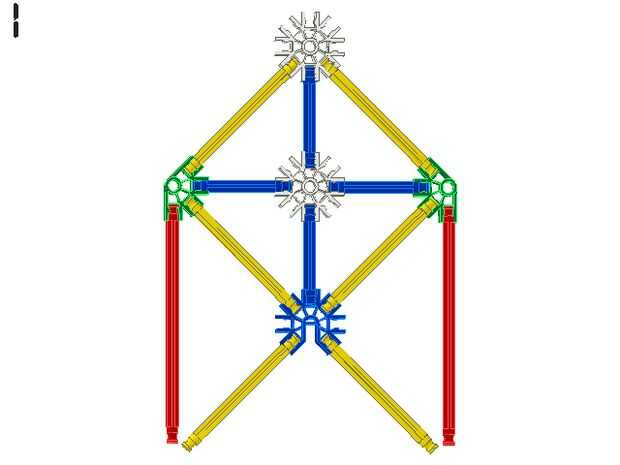 Paso 1 y añadir los dos paso 2 que hacerlo como se muestra en la figura 3. Después de que agrega una barra roja donde se muestra la imagen. Entonces el resultado final del paso 5 y añadir a la tapa de los conectores blancos. Agregar paso 3 a la parte inferior como en la imagen para terminar el marco de la trebuchet.