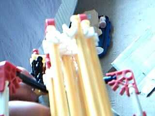Estos son armas casi por completo hice yo mismo y pido chicos para decidir si debo publicarlos.El doble gatillo V1 dispara alrededor de 40 pies con la parte inferior, y (creo) 60 pies con la parte superior, si utilizas bastante elásticos.Los brotes d