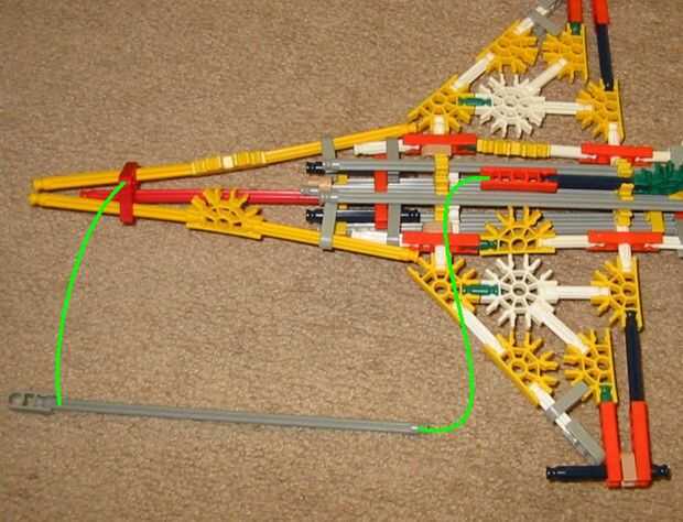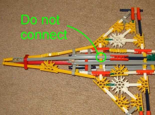 Inserte la barra gris a través del conector rojo de la nariz y luego conecte el extremo de la barra gris en el conector naranja del fuselaje.
