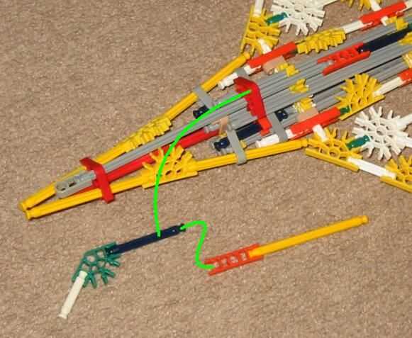 A continuación, inserte la barra azul de la cabina a través de este conector rojo y luego conecte el conector naranja a que barra azul para cerrar para arriba.