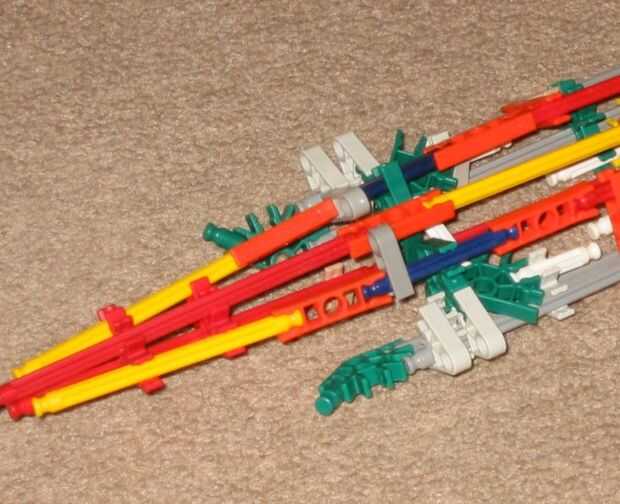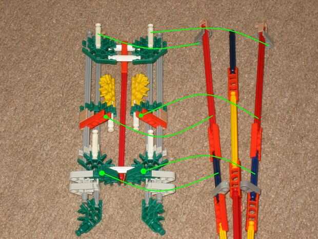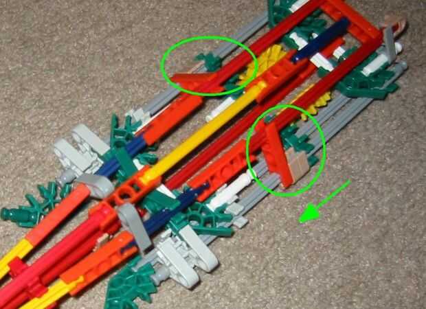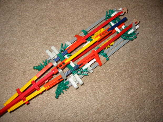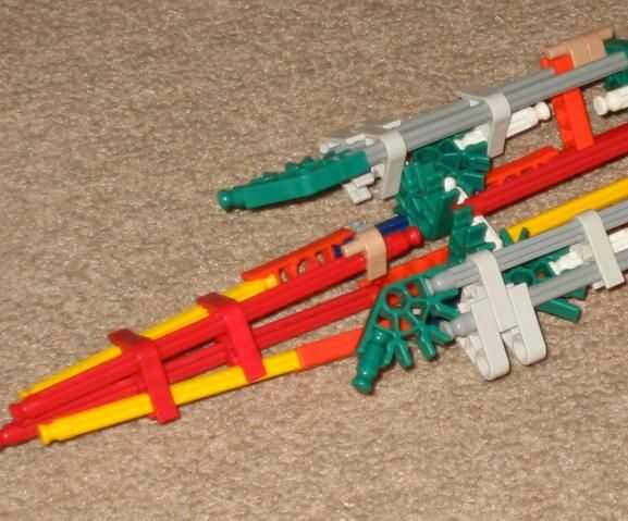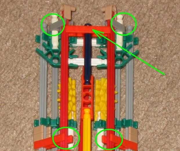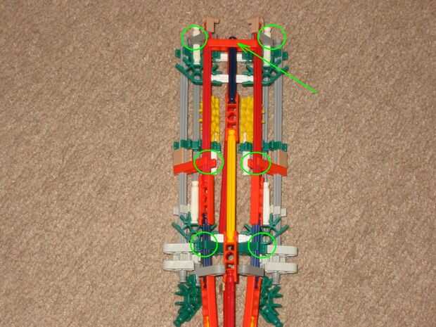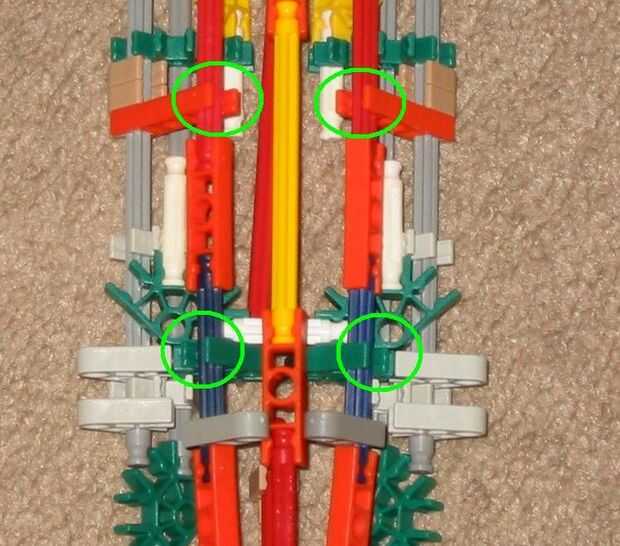 3. Añadir un conector naranja hasta el final del fuselaje (no se conectan a las barras. Las dos barras rojo deberían ser capaces de mantener en su lugar).