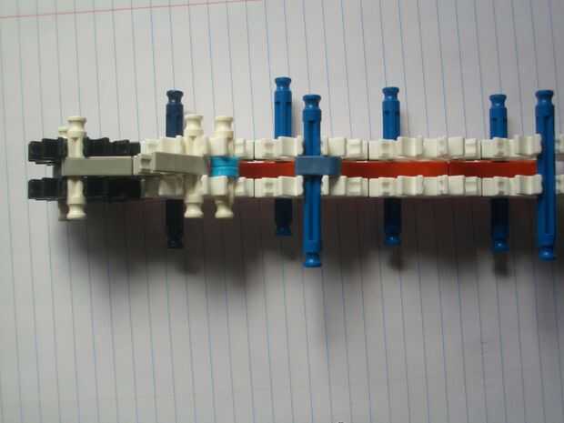 esta pistola dispara bastante lejos y es muy potente. Son las piezas que se necesita,2 cortarla13 conectores rojo4 barras azul3 barras de rojas o naranja5 conectores verdes2 conectores morados1 conector naranja1 barra verdeconector blanco 14 barras b