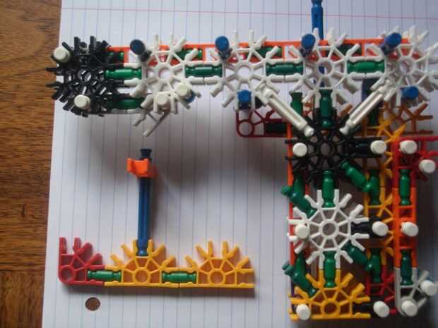 esta pistola es fácil de construir. Es poderosa por su tamaño pequeño. Este es mi primer instructable. Esta pistola dispara cerca de 25 pies.Paso 1: Piezas necesarias Fácil de construir. 7 conectores rojo. Gris 6. 4 amarillo. 1 naranja. 4 barras de a