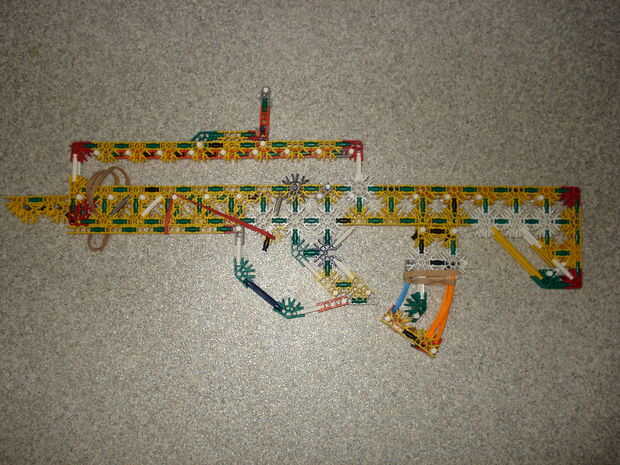 paciencia conmigo ya que este es mi primer ible. Este es mi rifle de asalto famas KVG. En palabras de knexfreek odio celebrar!!!!!! Podría publicar instrucciones si suficientes personas quierenPros-realista-tiene un clip de-gran variedad-es un arma b