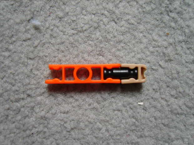 6. Añadir aquí.  La barra blanca en la parte posterior entra en el agujero en el conector rojo.