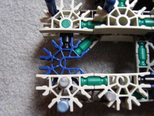 5. Sujete el cuerpo principal a través de los conectores azules en la parte superior y con las barras blancas en la parte posterior.