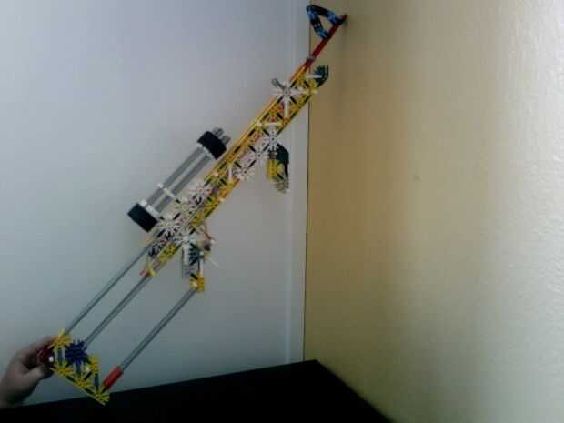 esto es, de lejos mi mejor arma diseñado que he hecho. es muy precisa y con una buena banda de goma tiene un buen rango (40-50 pies). la acción es duradera y el mango diseñado para parecerse a los springfields. está cargada y dispara barras blancas.