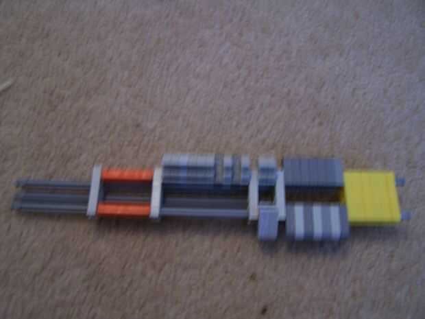1. la construcción de esta gran pieza. Línea de dos varas de largo gris y conectarlos con 7 conectores amarillos. Luego poner en 8 grises a ambos lados antes de poner otro conector amarillo para asegurar. Añadir dos más grises en cada lado, otro conector amarillo, 10 grets por un lado, otro conector amarillo, y luego añadir dos conectores naranja para lo que queda de las originales dos barras grises. Por último, añadir tres barras grises en la parte inferior de los conectores amarillos como se muestra en la imagen. (lo siento por este ser confuso)