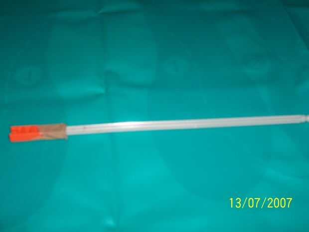 esto es un arma muy fuerte y es capaz de disparar 60 pies con un par de buen caucho tamaño y. Puede contener 7 tiros en el cargador.ADVERTENCIA: No disparar a nadie!!! Puede dejar moretones.Paso 1: barril Se trata de su cañón.Paso 2: Magezine Esta es