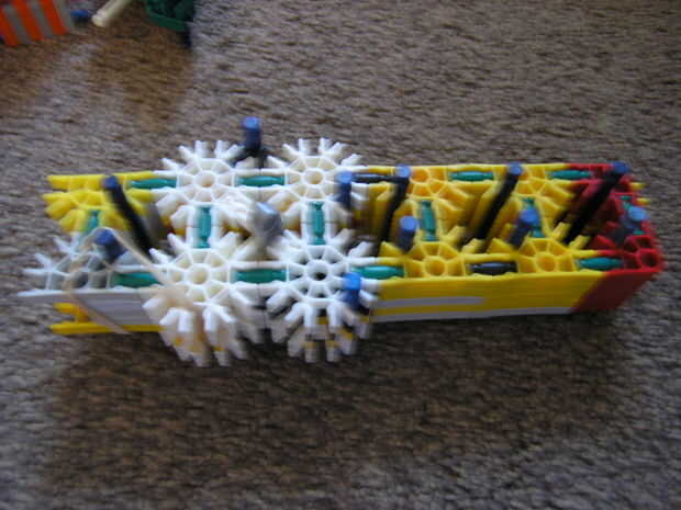 una pistola completamente automática KVG, inspirada en Extreme Builder. Cuenta con un compartimiento removible para conectores gris. También, fuego lentamente debido a la reducción del engranaje, pero no que poco a poco, es solo mi velocidad de arran