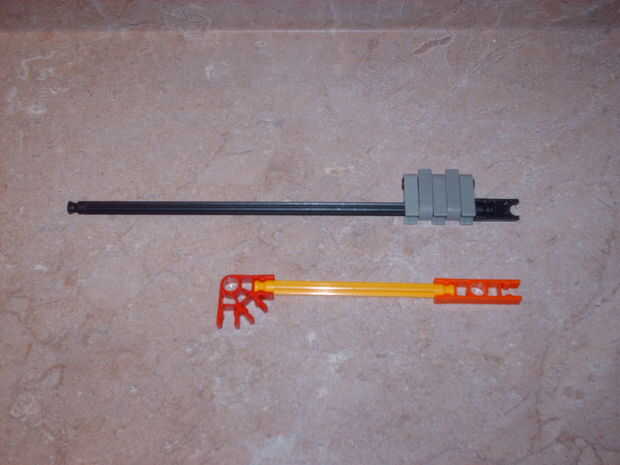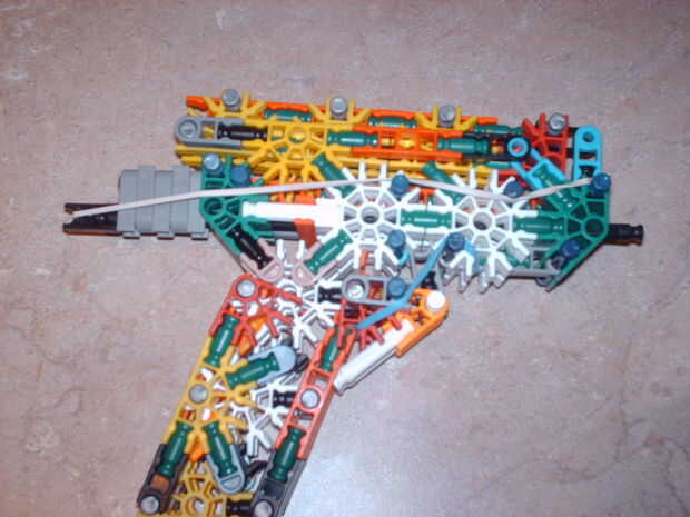 24 requiere KVG piezas, dos pequeñas bandas de goma y algunas pequeñas bandas de goma para munición (trabajo de bandas de refuerzo).Paso 1: El mango Paso 2: Cañón y disparo Paso 3: Mecanismo de carga Paso 4: Juntándolo todo Puede que tengas problemas