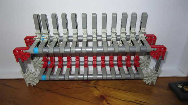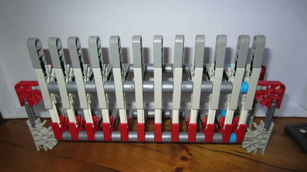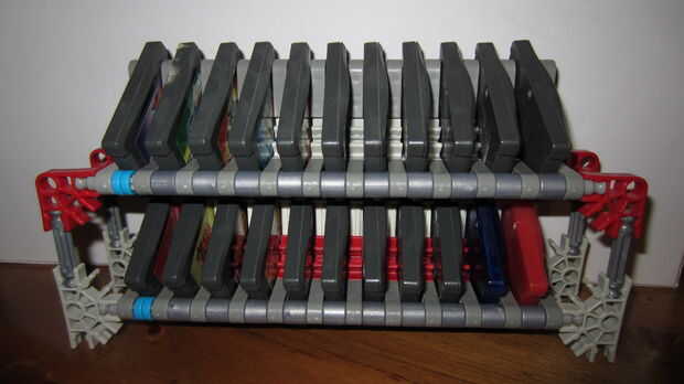 El principio de este soporte es igual a otro: los juegos de sentarse en los espaciadores que están separados por tabiques. Un ejemplo de la partición es uno de los cuadros. Barras largo gris se utilizan para esto, y 12 particiones son posibles (2 espaciadores azul son obligatorios para la última partición, en lugar de los espaciadores gris).