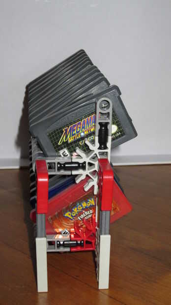 En general, este soporte puede contener 22 juegos de GBA y puede modificarse fácilmente para mantener 44 (por edificio y 2 soportes de conexión).