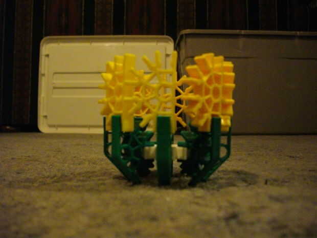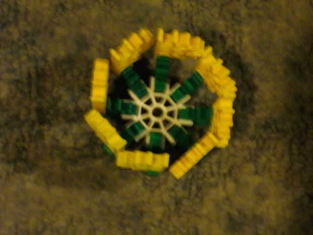 la Gernade impresionante que explota!!!Paso 1: Los recursos necesarios Usted necesitará 16 barras azul y 2 ruedas con llantas de mediaPaso 2: El cuerpo Tomar las 2 ruedas y poner las varillas en las ranuras de los neumáticos por lo que hay 2 espacios