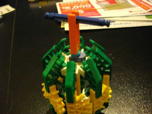 la Gernade impresionante que explota!!!Paso 1: Los recursos necesarios Usted necesitará 16 barras azul y 2 ruedas con llantas de mediaPaso 2: El cuerpo Tomar las 2 ruedas y poner las varillas en las ranuras de los neumáticos por lo que hay 2 espacios