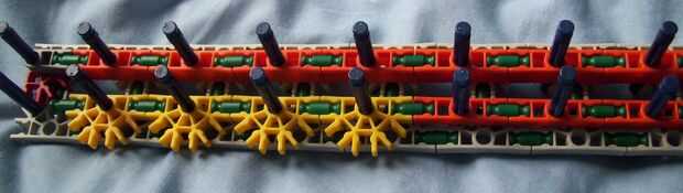 24 requiere KVG piezas, dos pequeñas bandas de goma y algunas pequeñas bandas de goma para munición (trabajo de bandas de refuerzo).Paso 1: El mango Paso 2: Cañón y disparo Paso 3: Mecanismo de carga Paso 4: Juntándolo todo Puede que tengas problemas