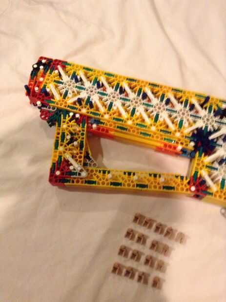 Pros:-Caja de seguridad pero doloroso-Puede hacer abolladuras en la cartulina.-Nuevo tipo de leñaContras:-Lleva una buena cantidad de tiempo para volver a cargar-One shotPaso 1: Paso 1 Montar lo siguiente:Paso 2: materiales1 banda de cauchoConectores