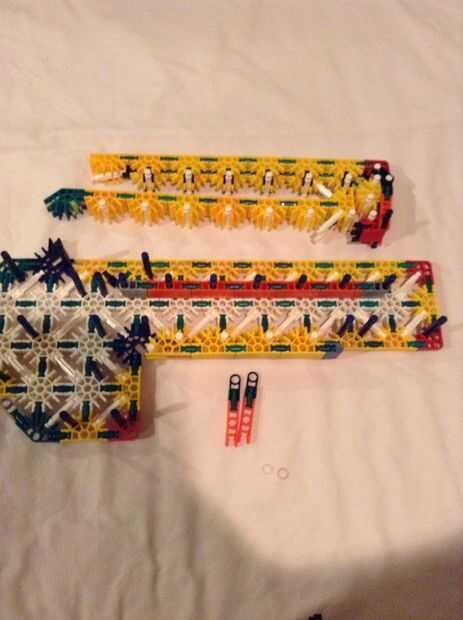 Esto es una gran parte que incluye la pista real de la bala, el soporte para las bandas de la leña y algunos más relleno. Tengo las gomas pequeñas en este paso, pero no se agregan a la pistola hasta el paso 11 para apartarlas. Información sobre la imagen.