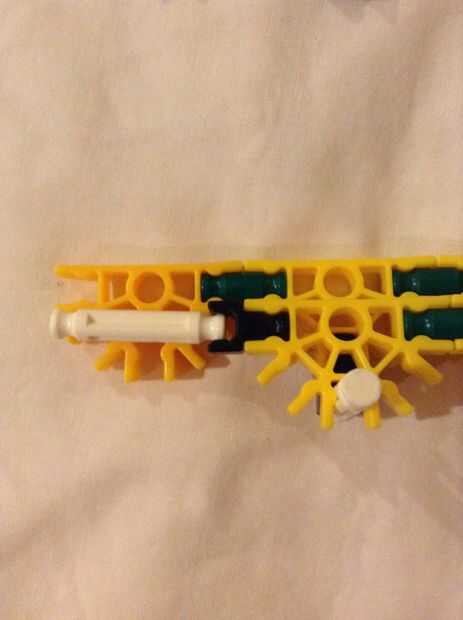 Pros:-Caja de seguridad pero doloroso-Puede hacer abolladuras en la cartulina.-Nuevo tipo de leñaContras:-Lleva una buena cantidad de tiempo para volver a cargar-One shotPaso 1: Paso 1 Montar lo siguiente:Paso 2: materiales1 banda de cauchoConectores