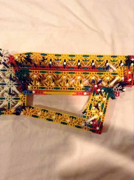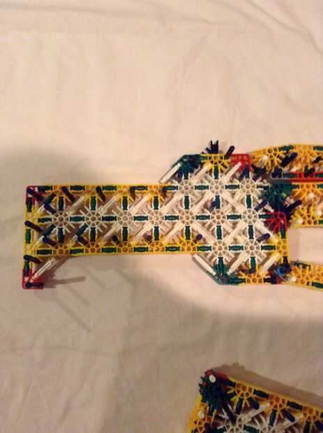Hola chicos, tengo otra arma para usted! Esta es una futurista pistola K'nex. Cuenta con un cuerpo futurista sintético, thumbhole apretón, de disparo único, y es un solo tiro. Parece a tiro un clip gris y verde caña mejor, seguido por barras blancas.