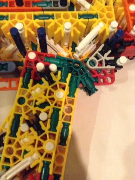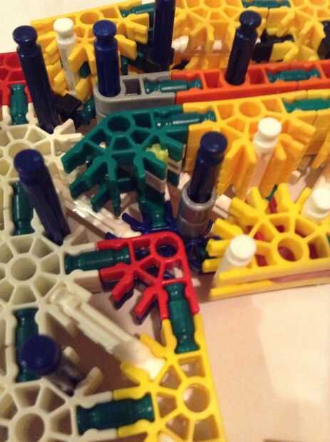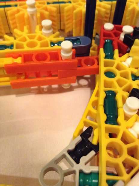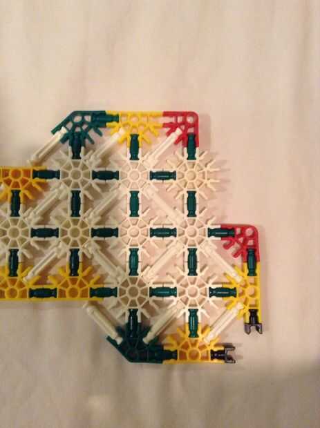 15. se comienza a deslizar esta pieza a través del espacio en la parte superior de la palanca entre los dos conectores verdes