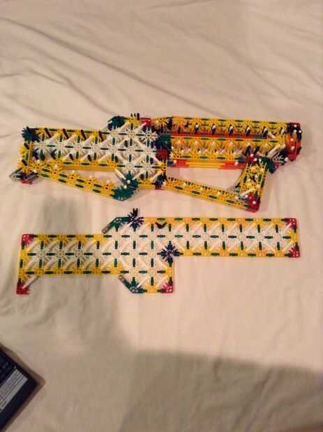 Hola chicos, tengo otra arma para usted! Esta es una futurista pistola K'nex. Cuenta con un cuerpo futurista sintético, thumbhole apretón, de disparo único, y es un solo tiro. Parece a tiro un clip gris y verde caña mejor, seguido por barras blancas.