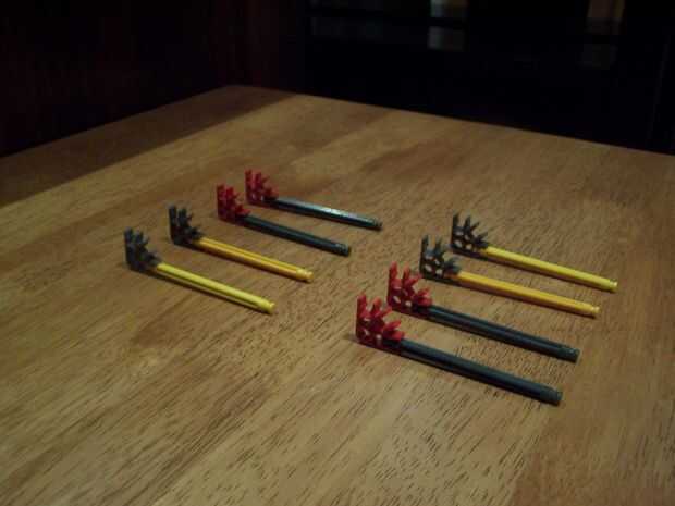esta es el arma más poderosa de K'NEX creo que porque puede perforar 2 cerveza o COLA puede y destruir disco compacto fácilmente debido a la muy fuerte 4 gomas (yo uso 2 ligas diferentes) también incluye una gran revista para 5 K'NEX largo gris afila