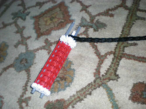 Ahora poner una barra blanca en el borde del copo de nieve. Luego poner 1 pequeña parte de la cadena a través de él.