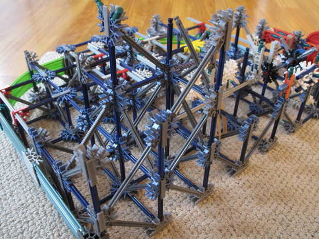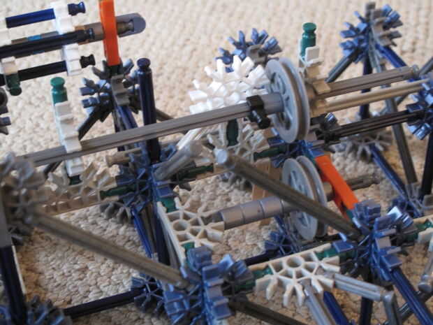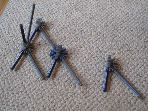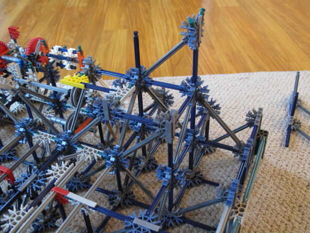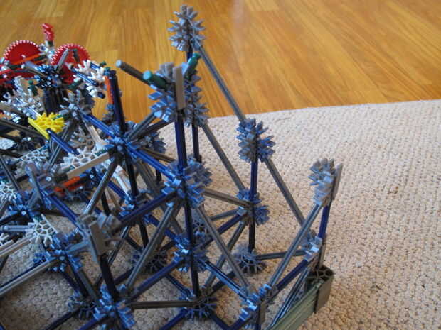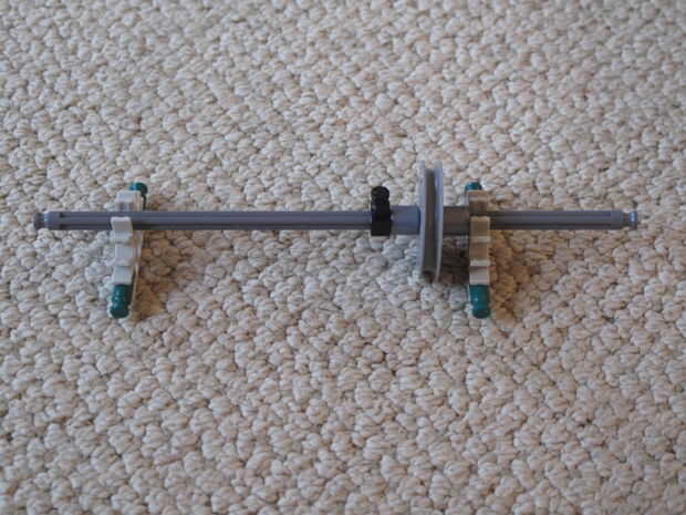 2 - Añadir la primera sección a la base. Las dos ruedas deberán estar alineados.