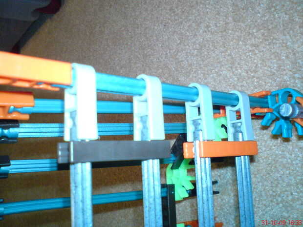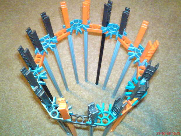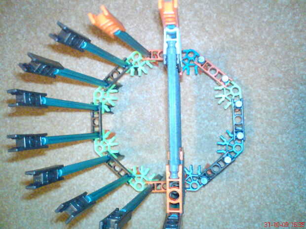 KVG lanza en el aire, también podría ser un armaAllí se supone que es una banda de goma en el extremoPaso 1: Las piezas que necesitaHay tres conectores blanco conectores naranja 29, dos conectores tan, nueve barras grises, dos barras blancas y una ba