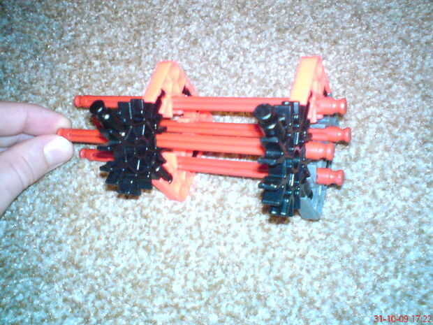KVG lanza en el aire, también podría ser un armaAllí se supone que es una banda de goma en el extremoPaso 1: Las piezas que necesitaHay tres conectores blanco conectores naranja 29, dos conectores tan, nueve barras grises, dos barras blancas y una ba