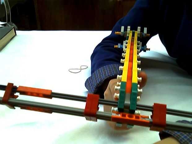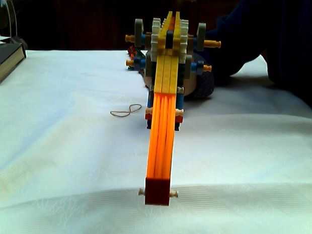 el otro día conseguí mantener un montón de Lego y goma bands.so me decidí a hacer una ballesta impresionante. Dispara a 15 millas por hora. es muy potente y bien precisa. se realizó con la ayuda de mi amigo.