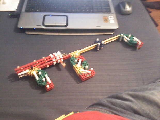 Aquí es mi primer arma de K'nex. Es muy fuerte, tiene una gama de cerca de 35 pies y es muy fácil de construir. La pistola dispara barras amarillas. Espero que soy bastante claro con las instrucciones. Es mi primer instructable.* Utiliza modificado g