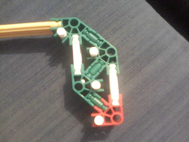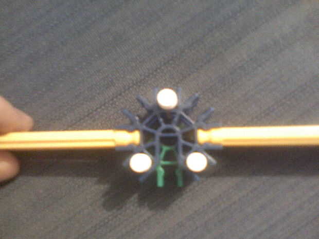 Fije los conectores con 3 varillas blanco como se muestra, se puede ver la pieza verde que fue unida a las barras de la parte inferior dos entre los conectores aquí... Si tienes un repuesto conector amarillo que será más útil como se muestra en la siguiente imagen