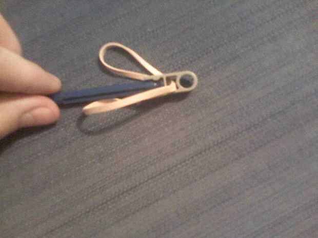 usando la cinta de goma, una barra azul y una gorra gris, construir la barra como se muestra en la primera foto
