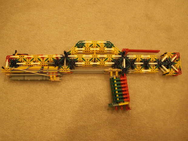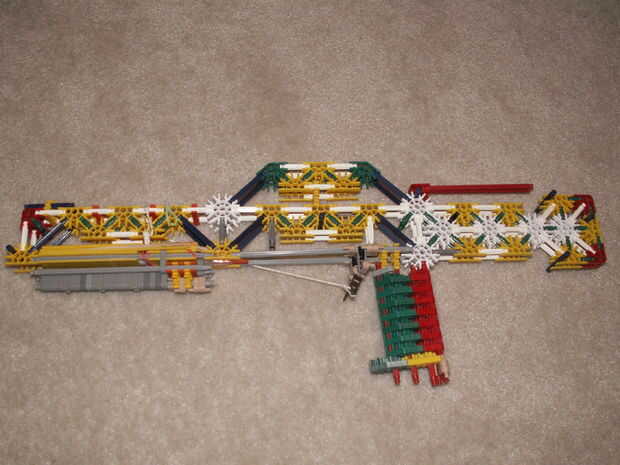 Este arma tiene que sienten gran escopeta. También es un disparador de bloque unido a un verdadero disparador con una cadena. Lo hice porque bloque desencadenadores pueden manejar la tensión de la mayoría. También de esta manera usted puede tener una escopeta de acción de la bomba que auto-recargas. No es muy complicado por lo que cualquier persona puede construir, incluso principiantes.