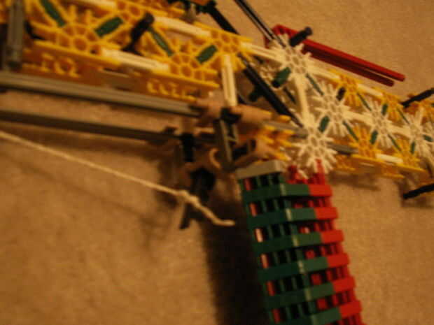 Asegúrese de que la cadena tira del gatillo del bloque frente a las bandas de goma!