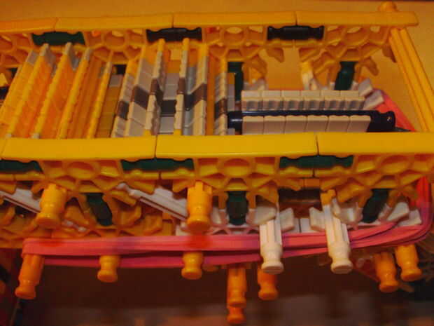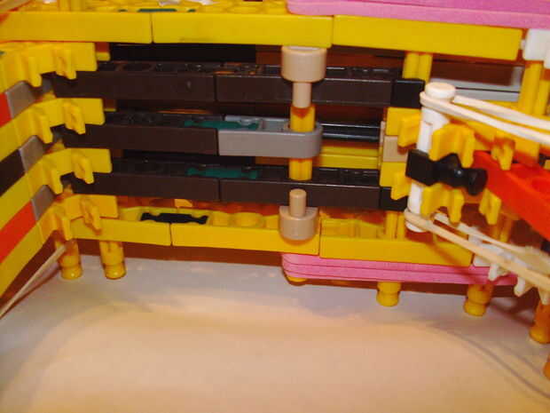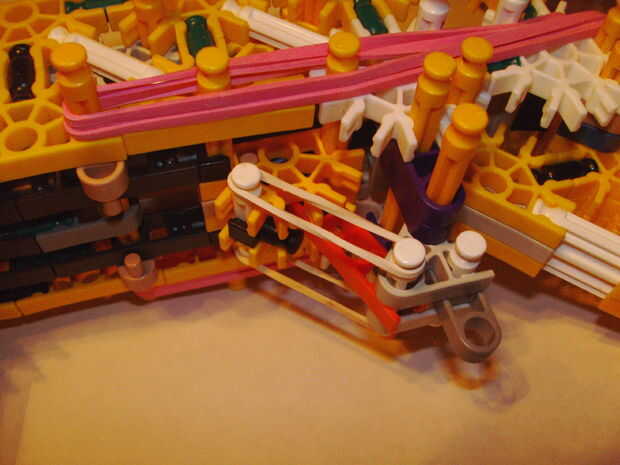 Put everything together. Todavía necesitará Añadir piezas adicionales en este paso. Observar las imágenes cuidadosamente para encontrarlos. Acople elástico como se muestra.